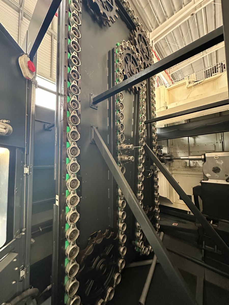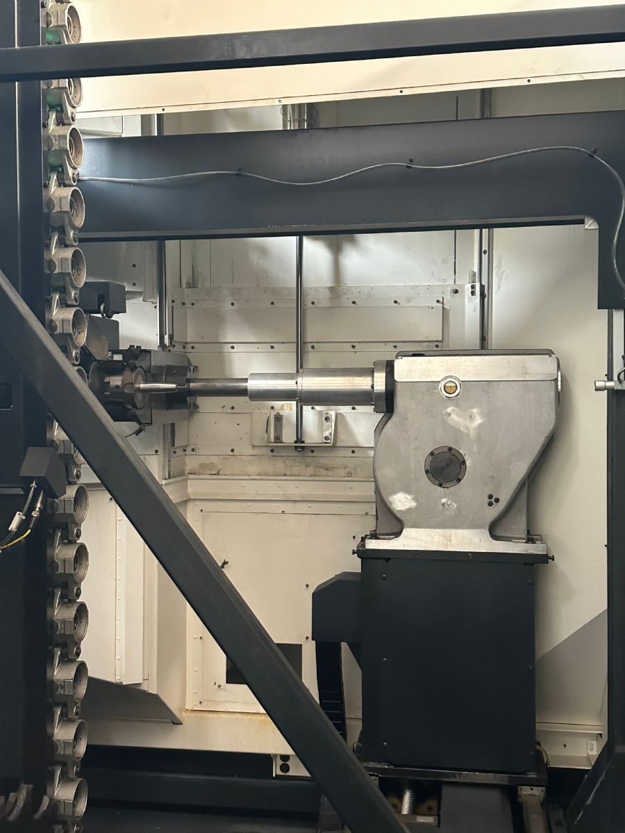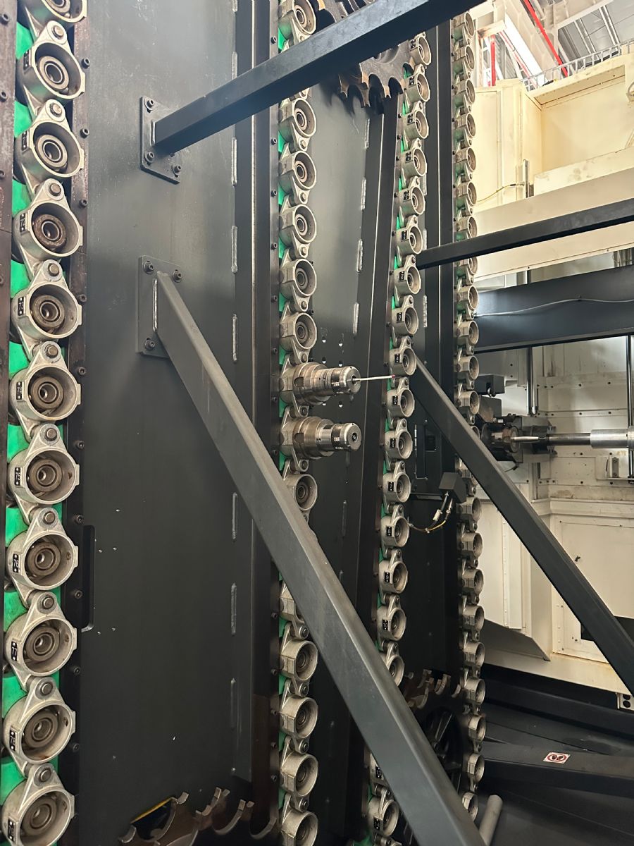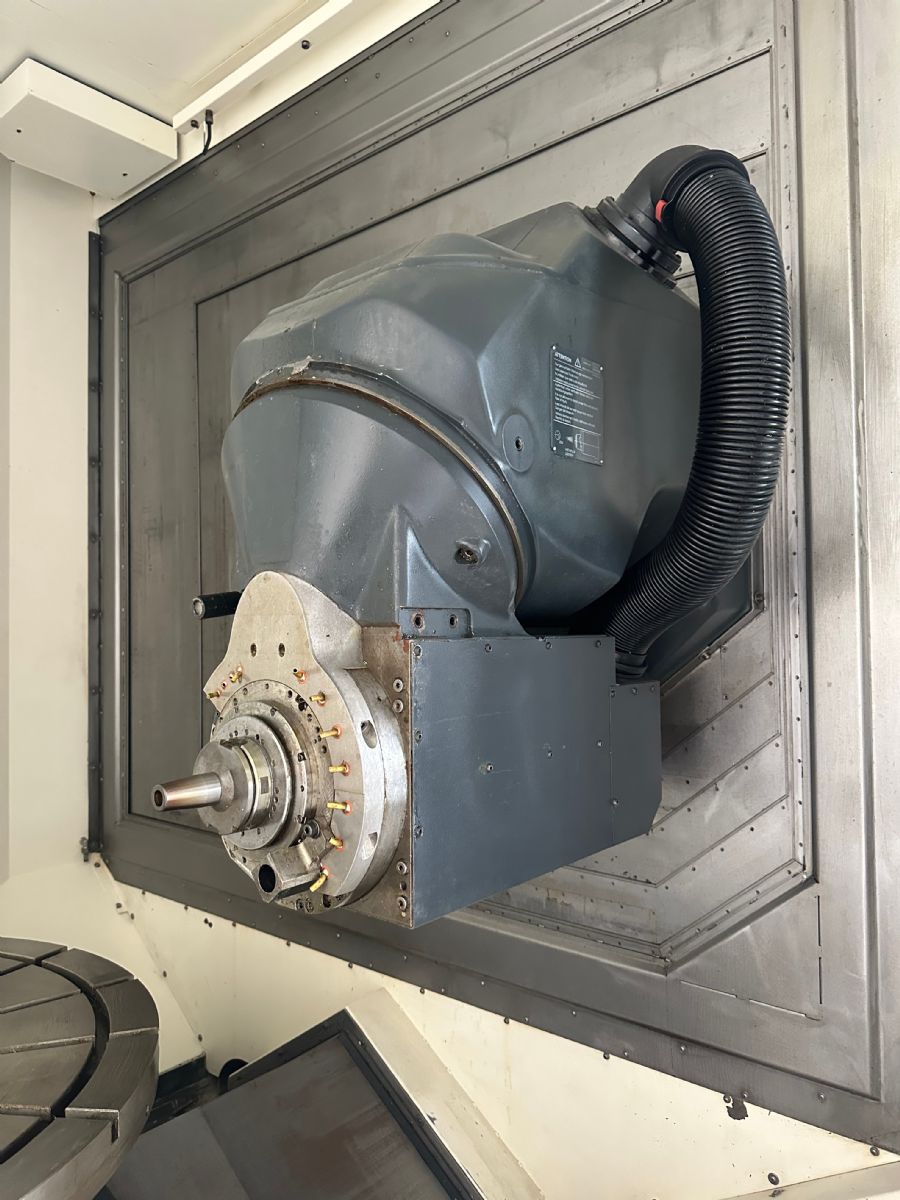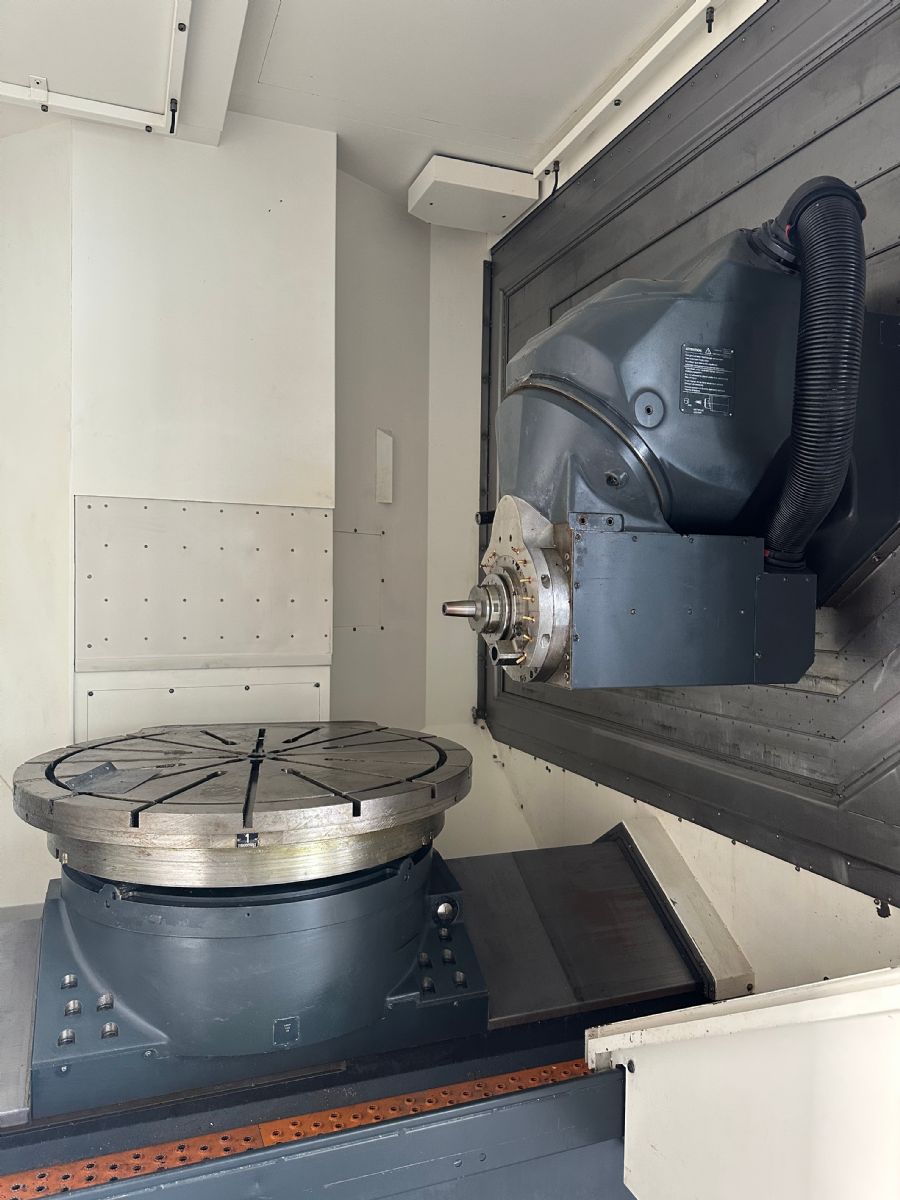 系統(tǒng):西門(mén)子840D 直線(xiàn)軸:X軸1250mm*Y軸1250mm*Z軸1000mm 直線(xiàn)軸進(jìn)給速率:60000mm/min 旋轉(zhuǎn)軸:C軸360° B軸-30/+180° 主軸轉(zhuǎn)速:20~12000rpm 主軸刀柄:HSK 100 交換式雙工作臺(tái) 工作臺(tái)尺寸:φ1100 刀庫(kù)容量:120把 帶車(chē)削功能