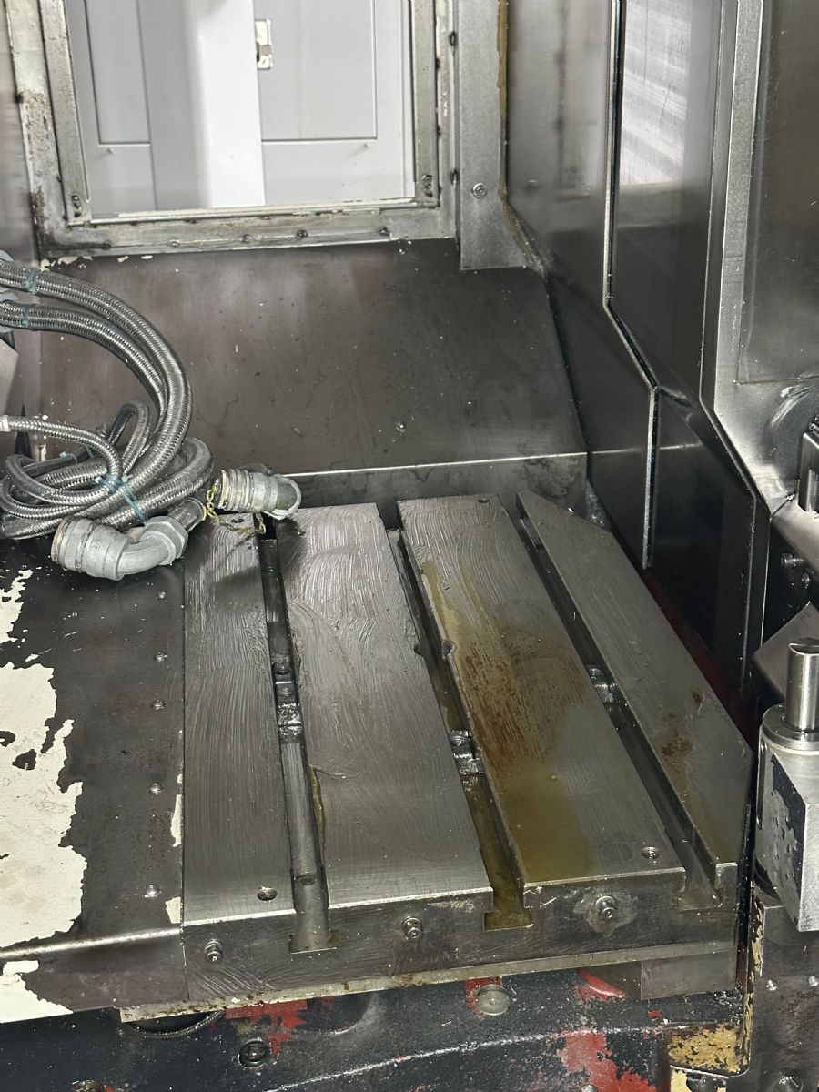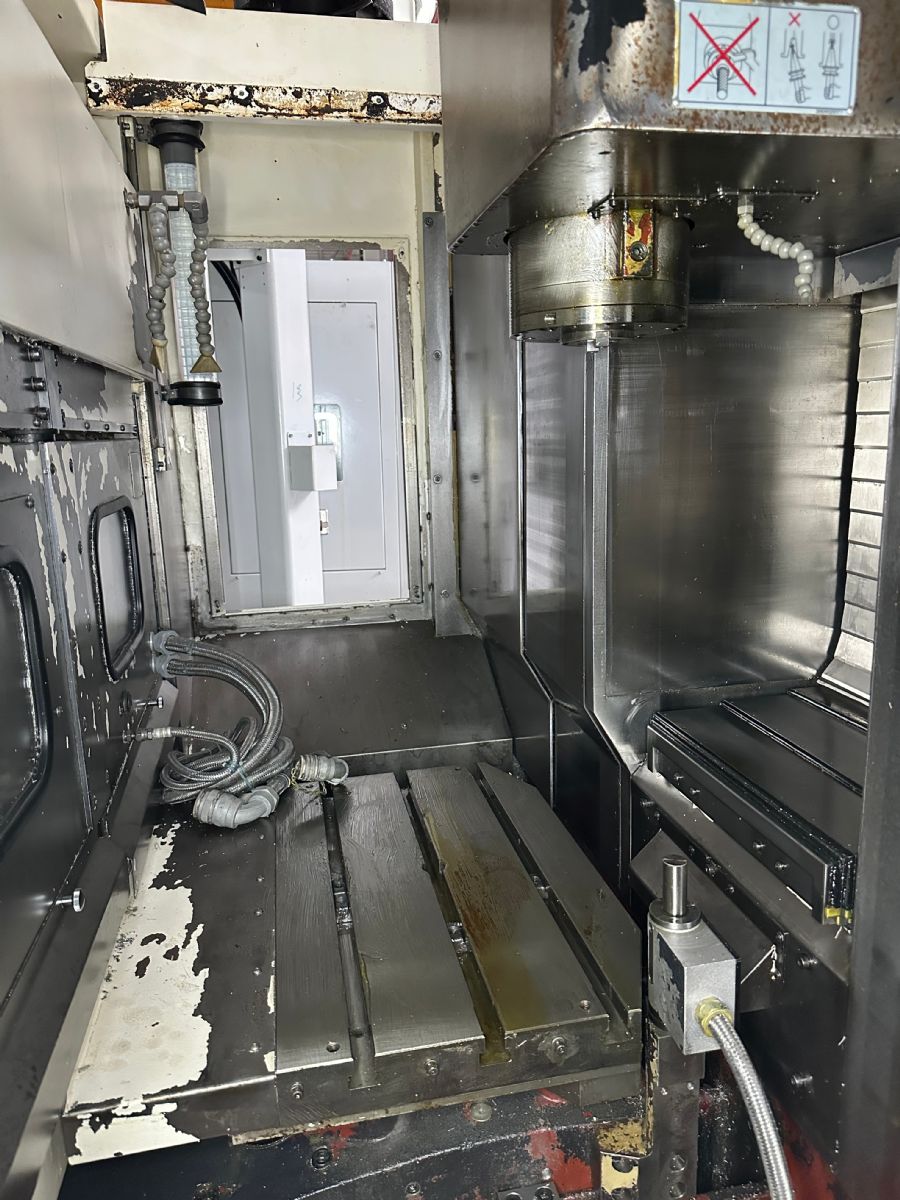 系統(tǒng):MAZATROL640MN 主軸轉速:10000rpm 主軸刀柄:BT40 行程:X軸560*Y軸410*Z軸510 交換式雙工作臺 工作臺尺寸:650*400 刀庫容量:24把 主軸中心出水