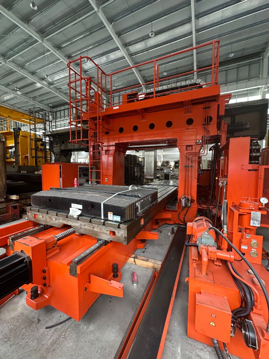 系統(tǒng):TOSNUC 600-MB 行程:X軸4500mm*Y軸2900mm*Z軸1000mm 門寬:2100 門高:1280 垂直主軸轉(zhuǎn)速:4000rpm 主軸刀柄:BT50 工作臺尺寸:1800*4000 ******載重量:14000KG 刀庫容量:60把